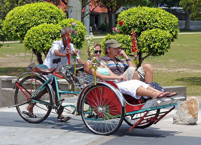 トゥクトゥクとの違いは、まず人力である事と座席が前にあるという事です。