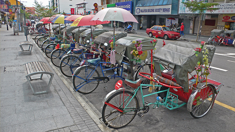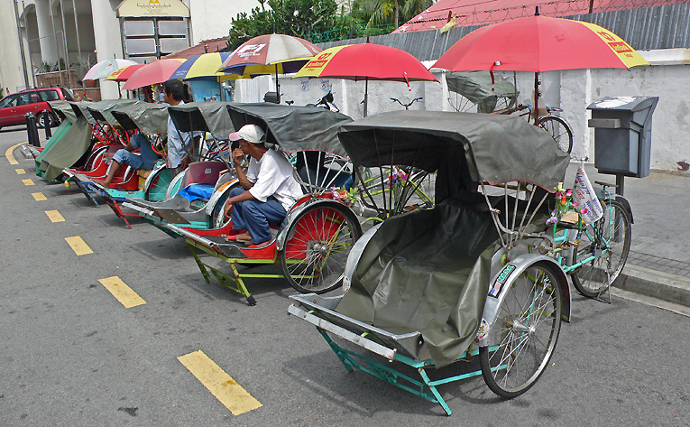 マレーシアのペナン島では、トライショー(上の写真)です。