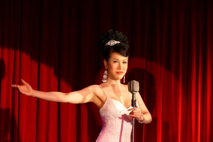 右側の写真は外国の有名人のものまねショーの様子。