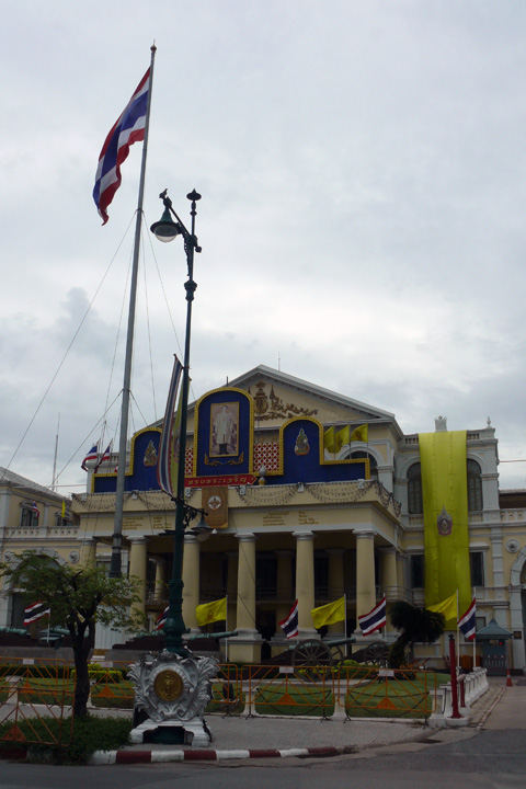 上の左側の写真は王宮に行く途中にあったタイ国防省の建物です。