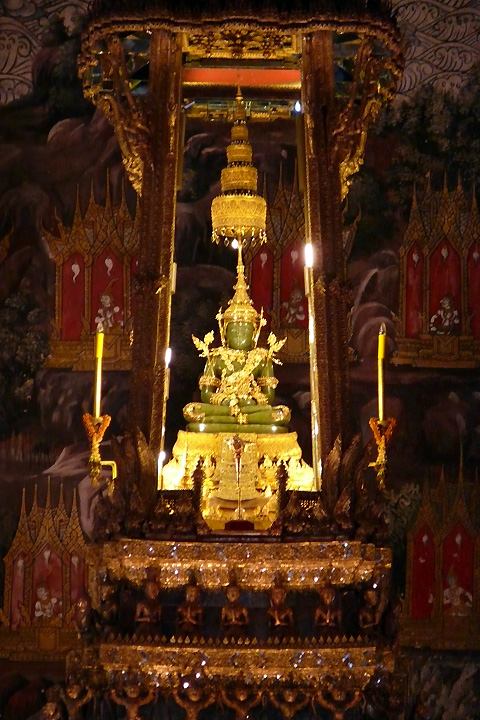 右側の写真がラタナーコーシン(インドラ神の宝石)、別名エメラルド仏。