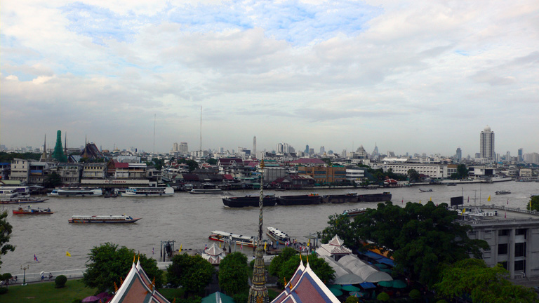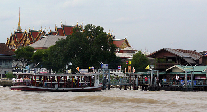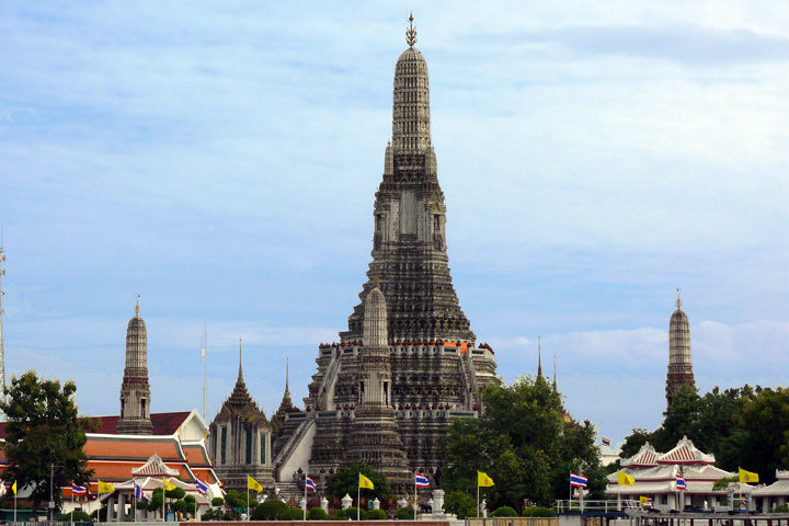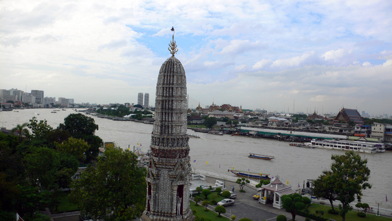 上の写真はチャオプラヤー川東岸のティアン船着場から見たワット・アルン。