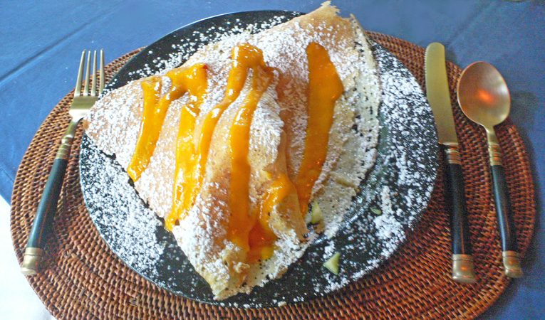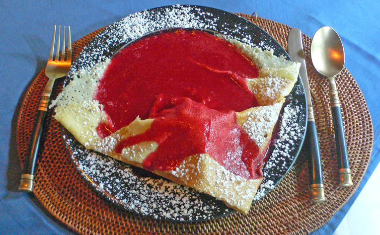 上の写真が今回注文したクレープで、左側が酸味の利いたフランボアーズ