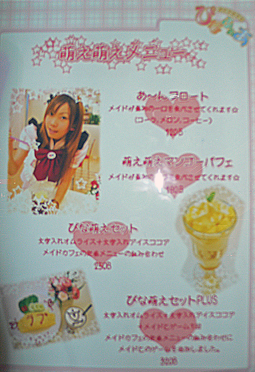 写真では見にくいですが、『あーんフロート』や『萌え萌えマンゴーパフェ』は