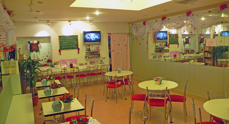 入口のカウンターでは、可愛い!?メイドさんがお出迎え。(上の左側の写真)