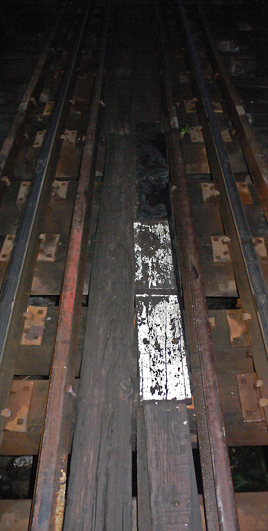 鉄橋をよく見たら中央に、板が渡してあります。(上の中央の写真)
