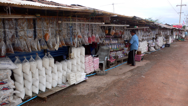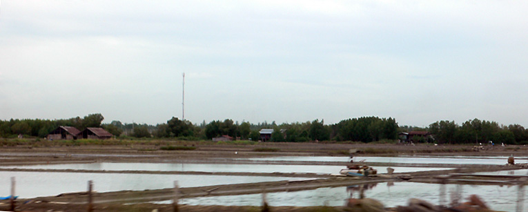 上の写真はダムヌン・サドゥアックに行く途中にあった塩田の様子です。