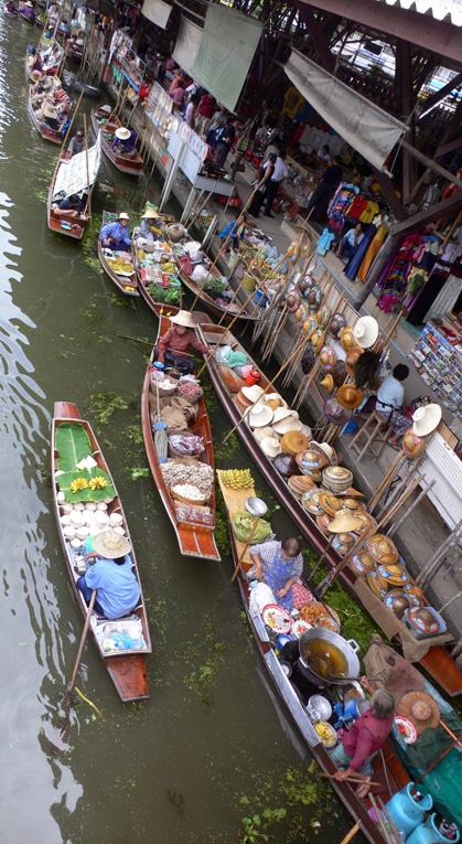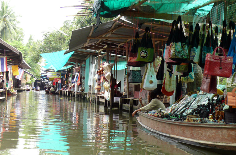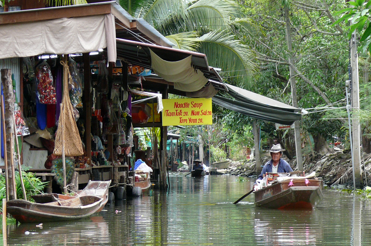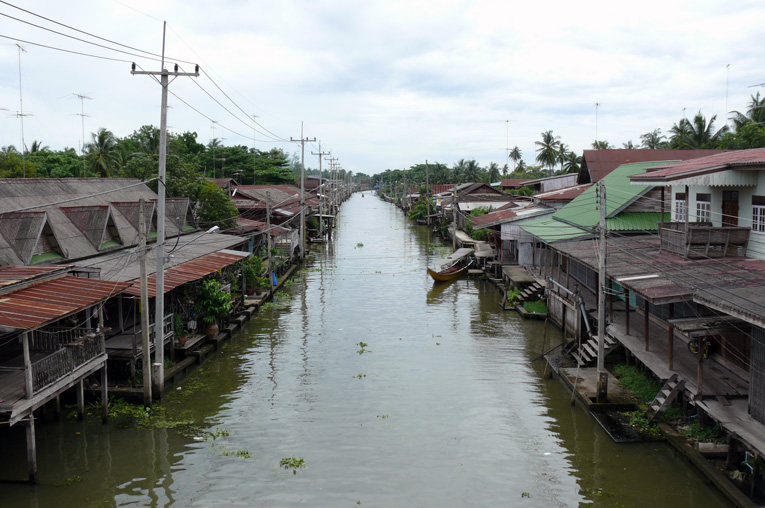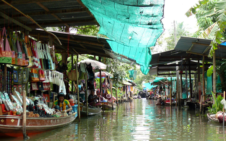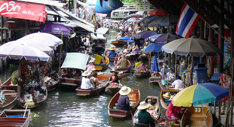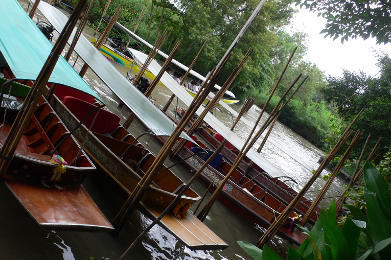 水の都バンコクの観光名所、ダムヌン・サドゥアック水上マーケットに到着!
