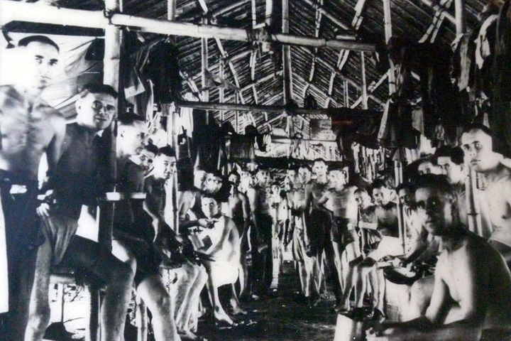 上の写真は日本軍に捕虜として捕らえられていた欧米人たちの宿舎での様子。