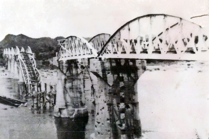 上の左側の写真は当時の橋の様子で、右側の写真が爆撃後の橋の様子。