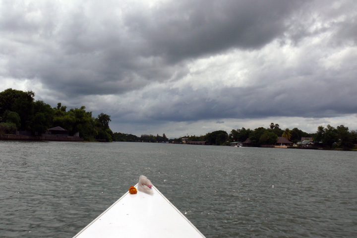 出発して汽笛を鳴らしながらゆっくりと進む列車からクワイ川を見ていると