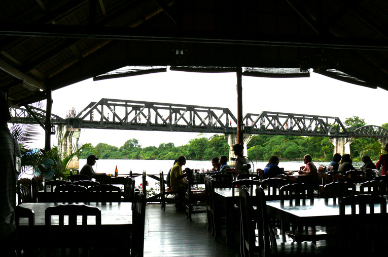クワイ川鉄橋を眺めながらゆっくり食事を楽しめます。