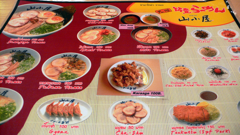 ラーメン以外にトンカツ[150B]や唐揚げ[100B]なんかもありました。
